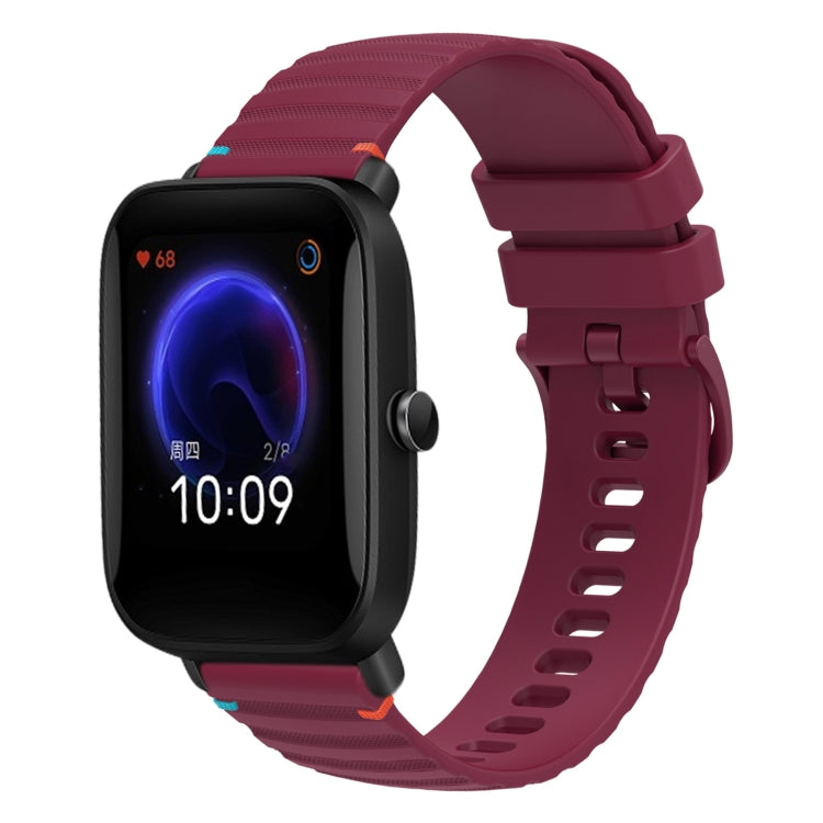 Correa de Silicona Amazfit Bip S 20mm con Puntadas Onduladas y Puntos (Rojo Vino)