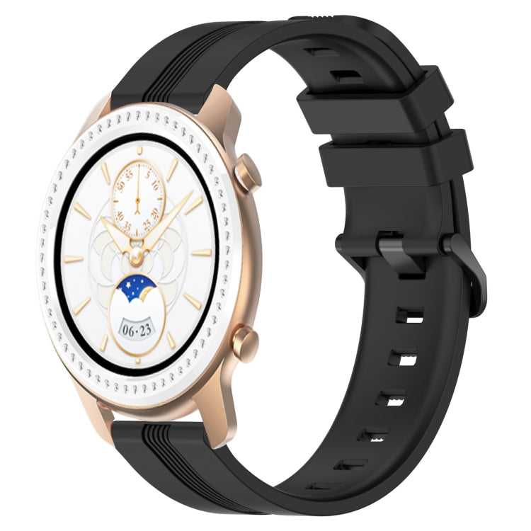 Banda de Reloj de Silicona para Amazfit GTR 2E 22mm con Rayas Cóncavas (Negro)