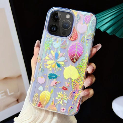 Película de Color Galvanizada TPU + Funda PC para iPhone 13 Pro (Hojas Doradas)