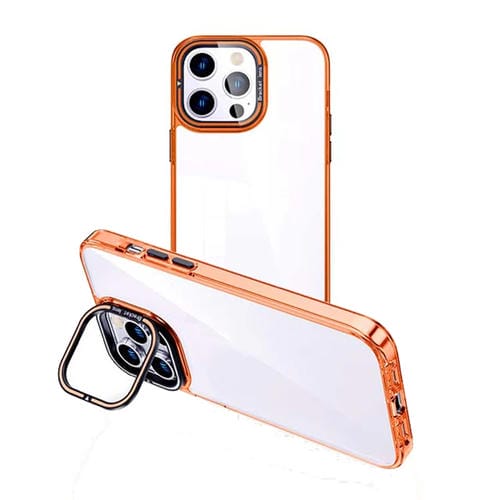 Funda para iPhone 13 Pro Transparente con Soporte para Cámara Invisible (Naranja)