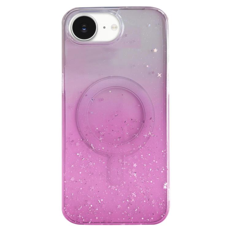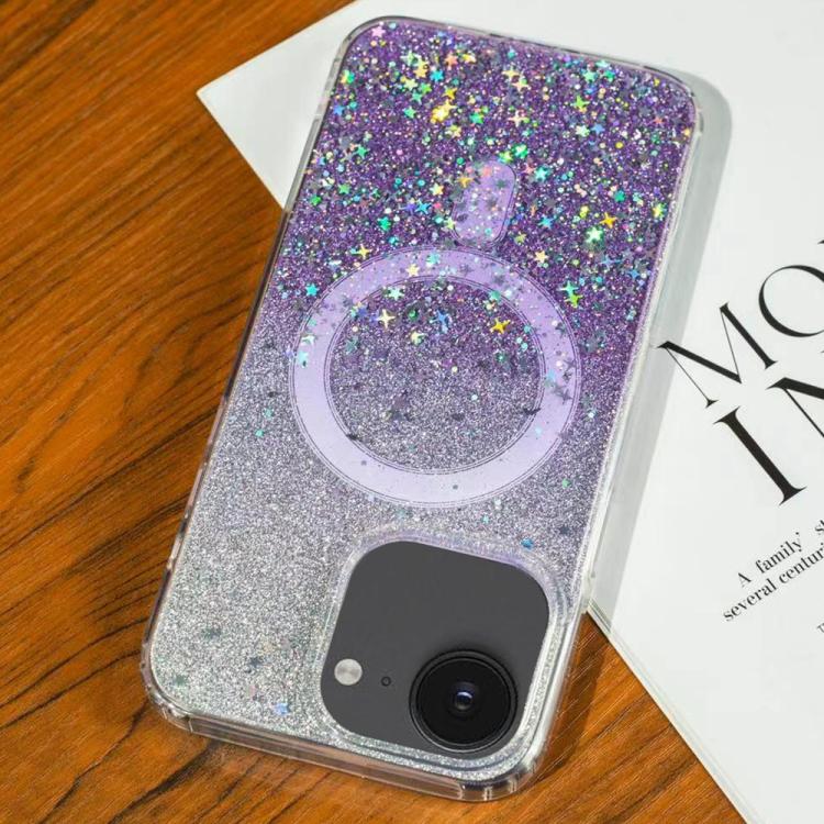 Funda MagSafe con purpurina degradada y estrellas para iPhone 16e (morado degradado)