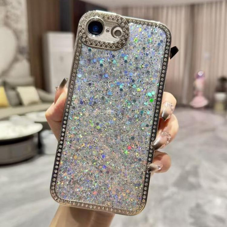 Funda de TPU con lentejuelas brillantes y diamantes para iPhone 16e (plateada)