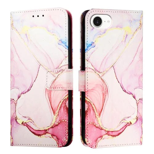 Funda de Cuero con Tapa y Diseño de Mármol Pt003 para iPhone 16E (Oro Rosa)