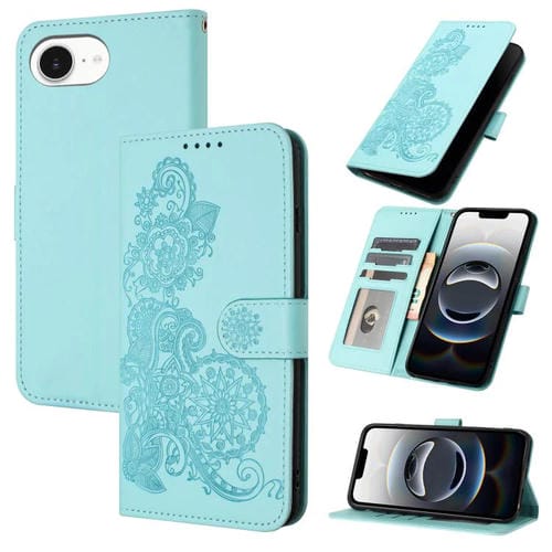 Funda Cuero iPhone 16E Tapa Diseño Flor de Datura En Relieve (Verde Oscuro)