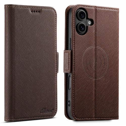 Funda de Cuero Suteni J08 con Textura Cruzada y Soporte Magsafe para iPhone 16 (Marrón)