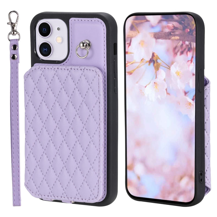 Funda para Teléfono iPhone 11 Grid Texture Card Bag con Cordón (Púrpura)