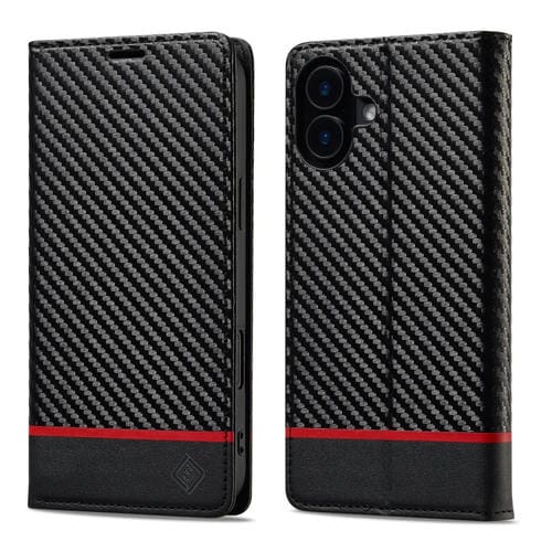 Funda de Cuero de Fibra de Carbono Lc.Imeeke para iPhone 16 Plus (Negro)