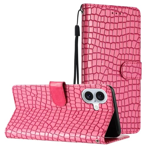 Funda de Piel con Tapa Horizontal Textura de Cocodrilo para iPhone 16 Plus (Rosa Rojo)