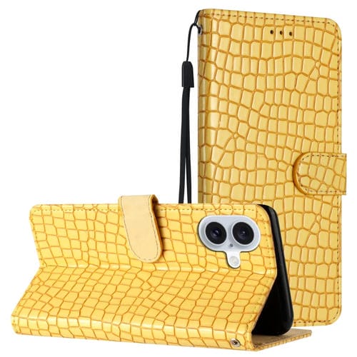 Funda de Piel con Tapa Horizontal Textura Cocodrilo para iPhone 16 Plus (Amarilla)