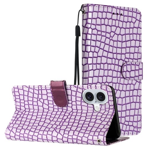 Funda de Piel con Tapa Horizontal con Textura de Cocodrilo para iPhone 16 Plus (Morado)