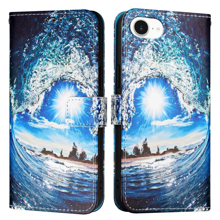 Funda de Cuero para iPhone 16E con Patrón de Dibujo de Colores (Ondas y Sol)