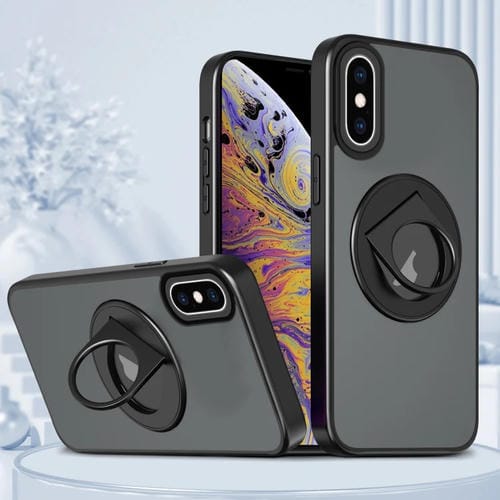 Funda para Teléfono Anillo Giratorio con Soporte Magnético para iPhone Xs Max (Negro)