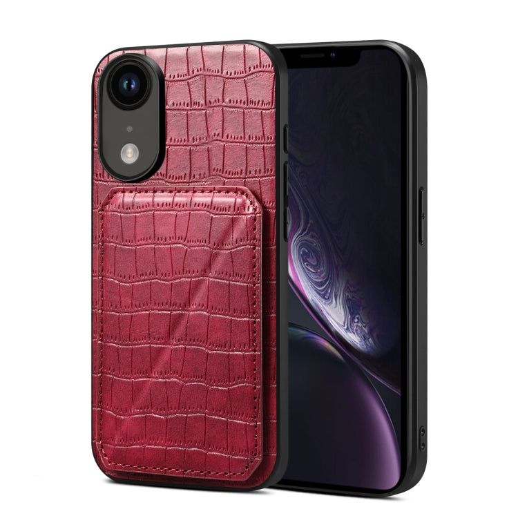 Funda Trasera para iPhone Xr de piel de cocodrilo de imitación con soporte (Rojo Rosa)