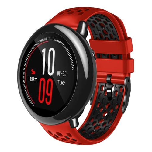 Correa de Reloj Amazfit Pace 22mm Silicona Transpirable Dos Colores (Rojo + Negro)