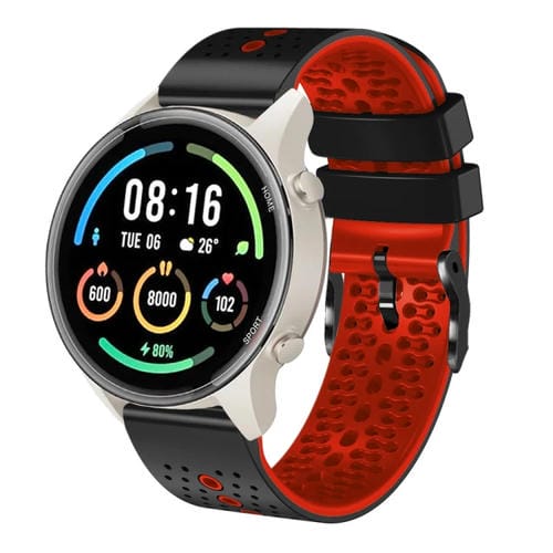Banda de Reloj Xiaomi Mi Watch S1 Pro 22mm Silicona Bicolor Perforada (Rojo + Negro)