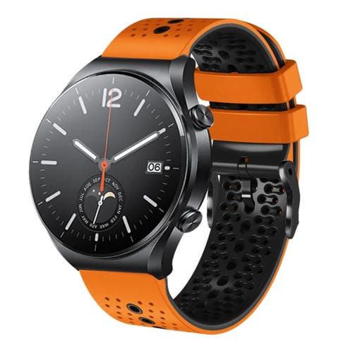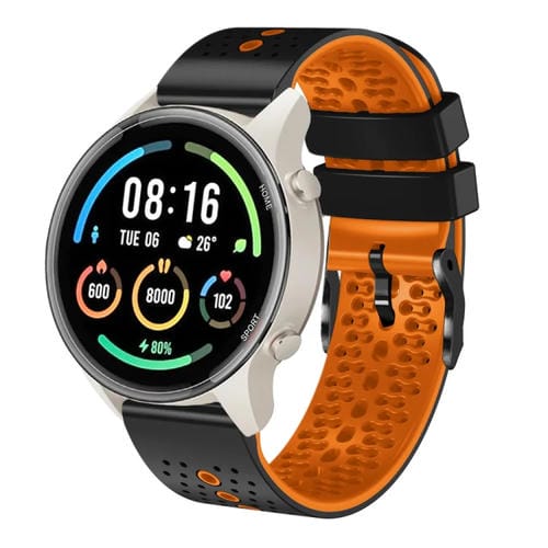Banda de Reloj silicona para Xiaomi Mi Watch S1 perforada 22mm (Naranja + Negro)