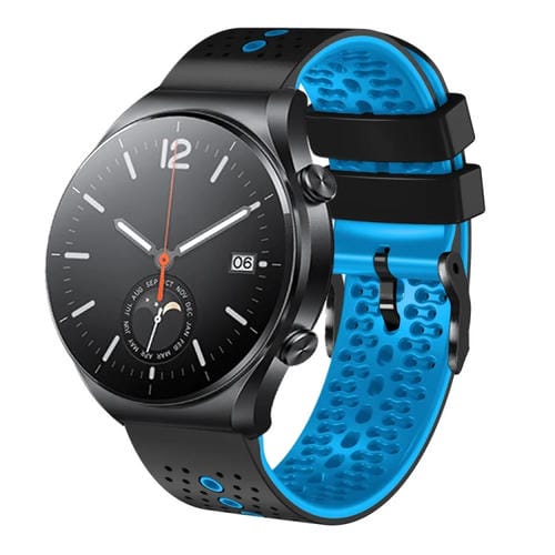 Correa de Silicona para Xiaomi Mi Watch S1 Pro 22mm Perforada (Negro + Azul)