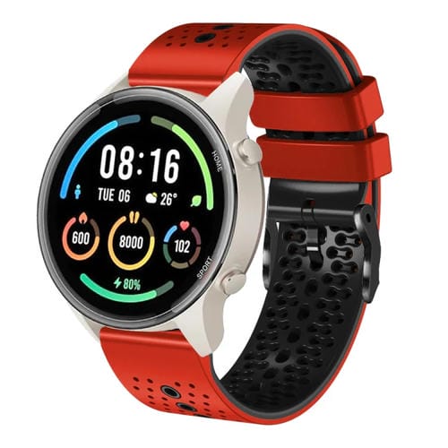 Banda de Reloj Xiaomi Mi Watch Color 2 22mm Silicona Perforada (Rojo + Negro)