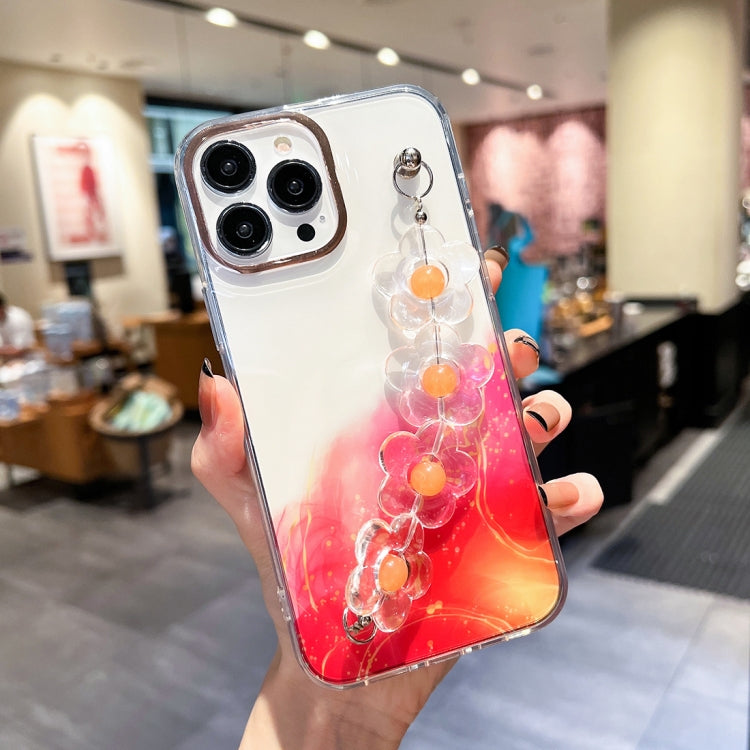 Funda para iPhone 13 Pro Gold Halo Marble Pattern con Brazalete de Flores (Rojo)