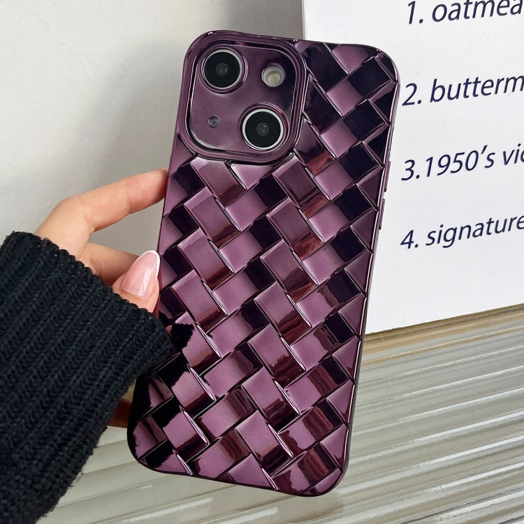 Caja del Teléfono para iPhone 14 Woven Grid 3D Galvanoplastia Grabado Láser (Púrpura)