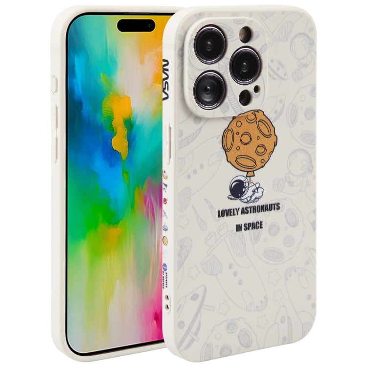 Funda de silicona Apple iPhone 16 Pro Max borde recto diseño astronauta (White)