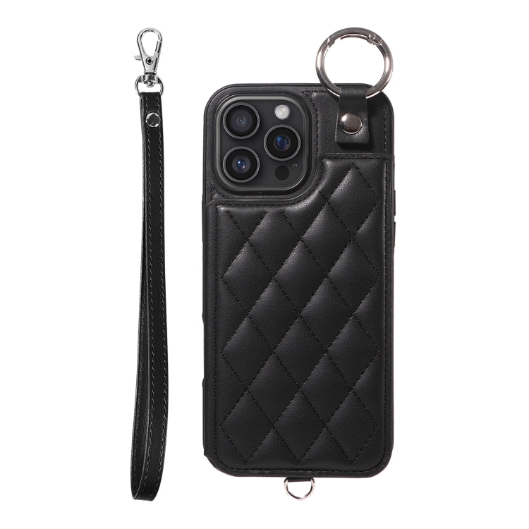 Funda para Teléfono iPhone 16 Pro Max Textura Rómbica Cordón Corto (Negro)