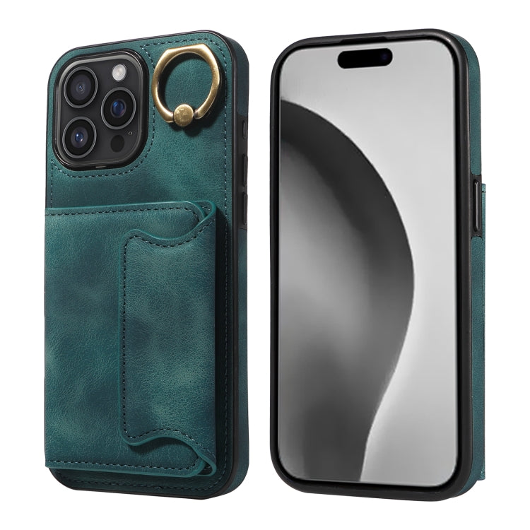 Funda para Teléfono con Tarjetero y Hebilla de Anilla para iPhone 16 Pro Max (Verde)