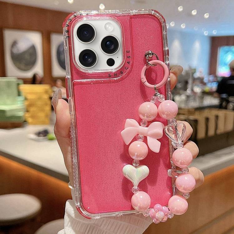 Funda para iPhone 16 Pro TPU PC Lentejuelas Brillantes Cobertura Total Pulsera (Roja)