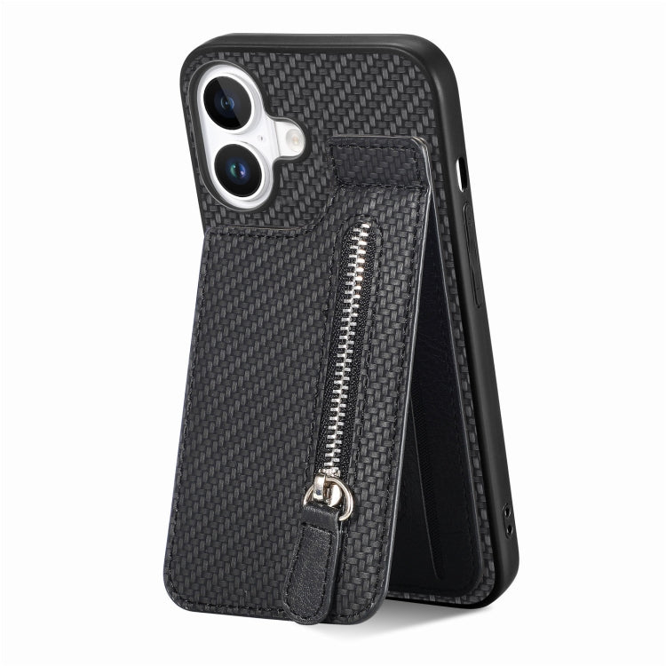 Funda de Fibra de Carbono para iPhone 16 con Cremallera Vertical (Negra)