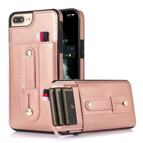 Case de Teléfono de Cuero Billetera Pulsera para iPhone 7 Plus / 8 Plus (Oro Rosa)