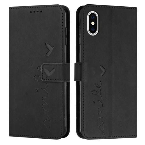 Funda para Teléfono Apple iPhone X Xs Skin Feel Heart Pattern Cuero (Negro)
