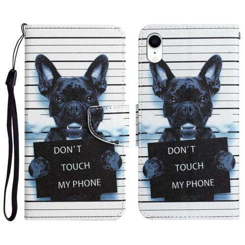 Estuche para Teléfono iPhone Xr Cuero con Dibujo Coloreado (Perro Negro)