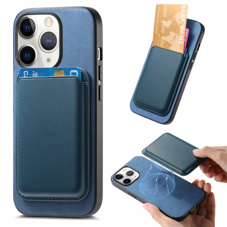 Funda para Teléfono iPhone 11 Pro Retro Magsafe Card Bag Pu con Contraportada (Azul)