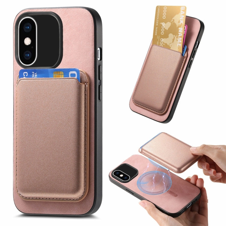 Funda para teléfono iPhone Xs Max Retro Magsafe Card Bag Pu con Contraportada (Rosa)