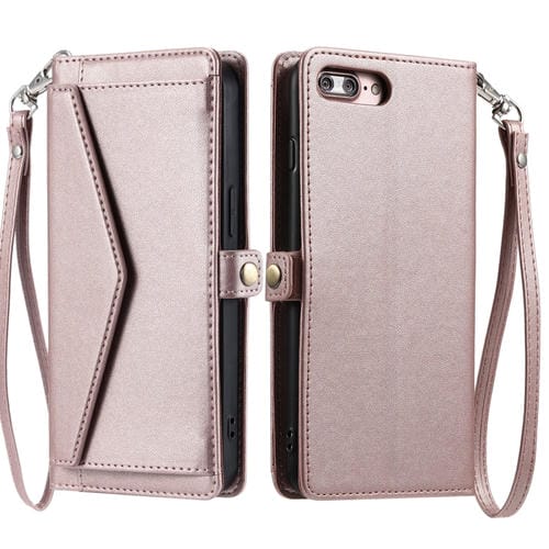 Funda de Cuero para iPhone 8 Plus/7 Plus Ranura Múltiples Tarjetas Cordón (Oro Rosa)