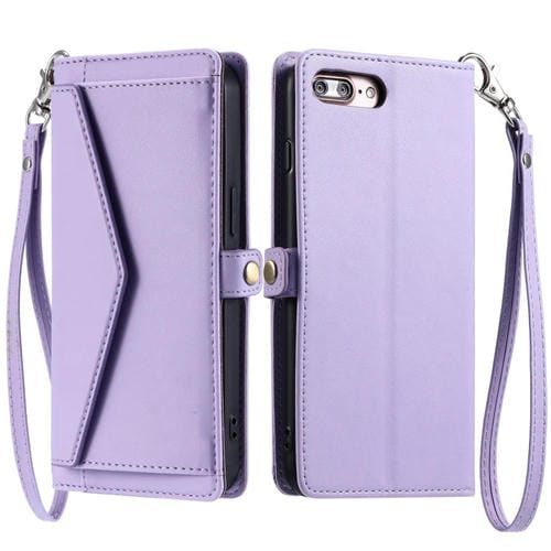 Funda de Cuero para iPhone 8 Plus/7 Plus Ranura Múltiples Tarjetas Cordón (Morado)