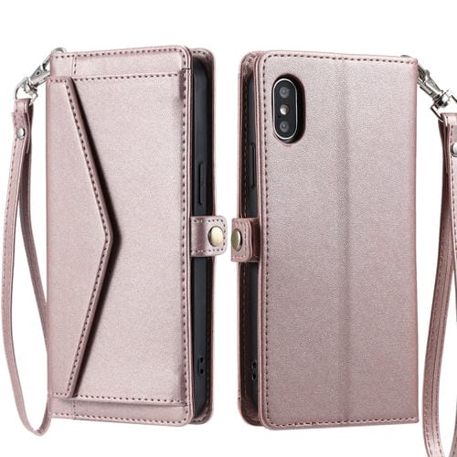 Funda de Cuero Tipo Billetera con Cremallera para iPhone X/Xs (Oro Rosa)