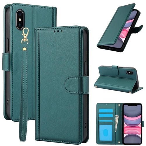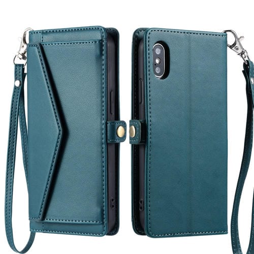 Funda de Cuero para iPhone Xs/X Ranura Múltiples Tarjetas Cordón (Verde)