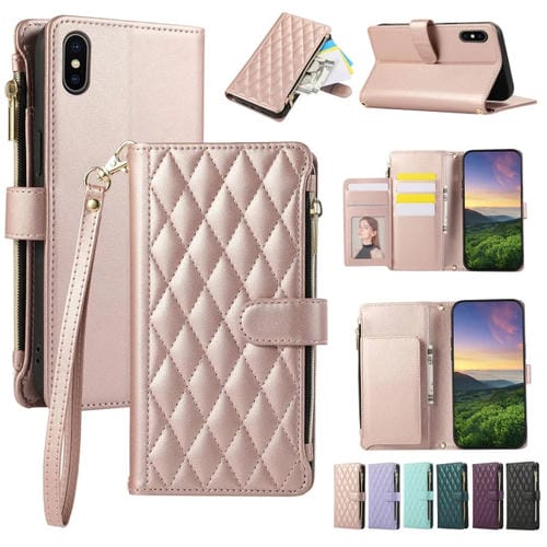 Funda Tipo Billetera Cuero con Cremallera Diseño Rombal para iPhone Xs Max (Morado)