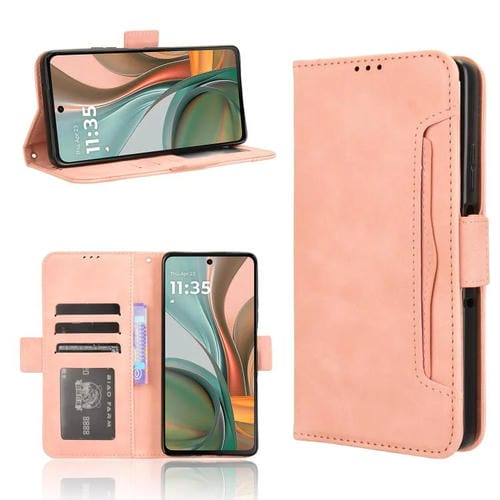 Funda de Cuero con Cremallera y Cordón para Motorola Moto G15 Nine Card (Rosa)