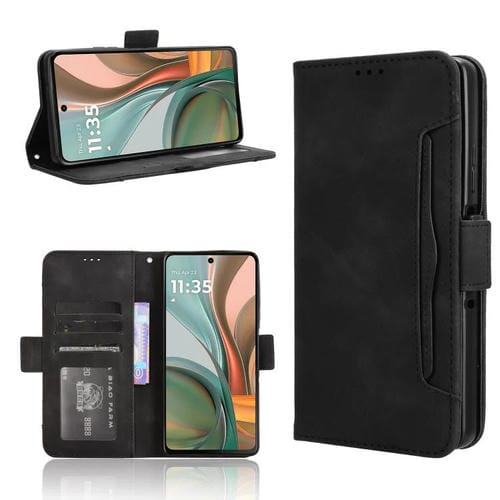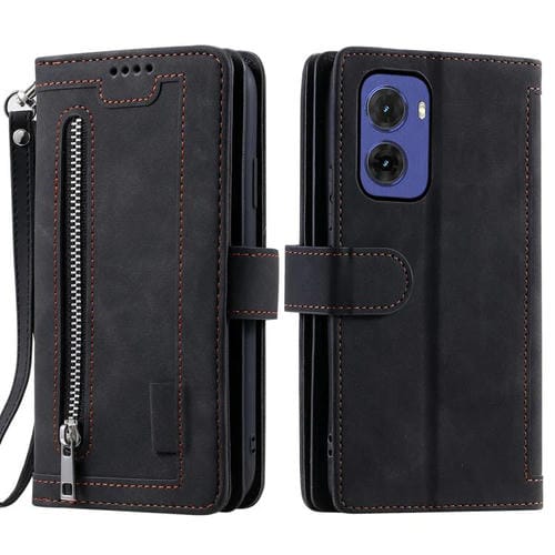 Funda de Cuero para Motorola Moto G05 Nine Card con Cremallera y Cordón (Negro)
