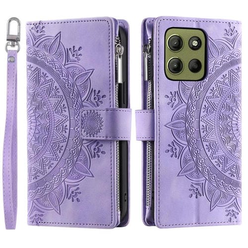 Funda de Cuero con Cremallera y Múltiples Tarjetas para Motorola Moto G15 (Morado)