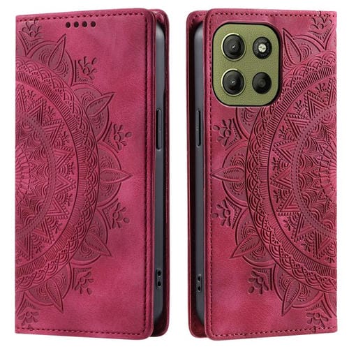 Funda de Cuero Magnética con Relieve Totem para Motorola Moto G15 (Rojo)