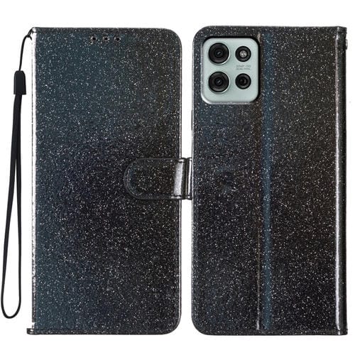 Funda de Cuero con Tapa y Purpurina para Motorola Moto G75 5G (Negra)