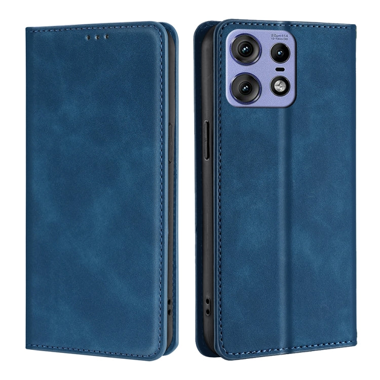 Funda de Cuero Magnética con Tacto de Piel para Motorola Edge 50 Pro 5G (Azul)