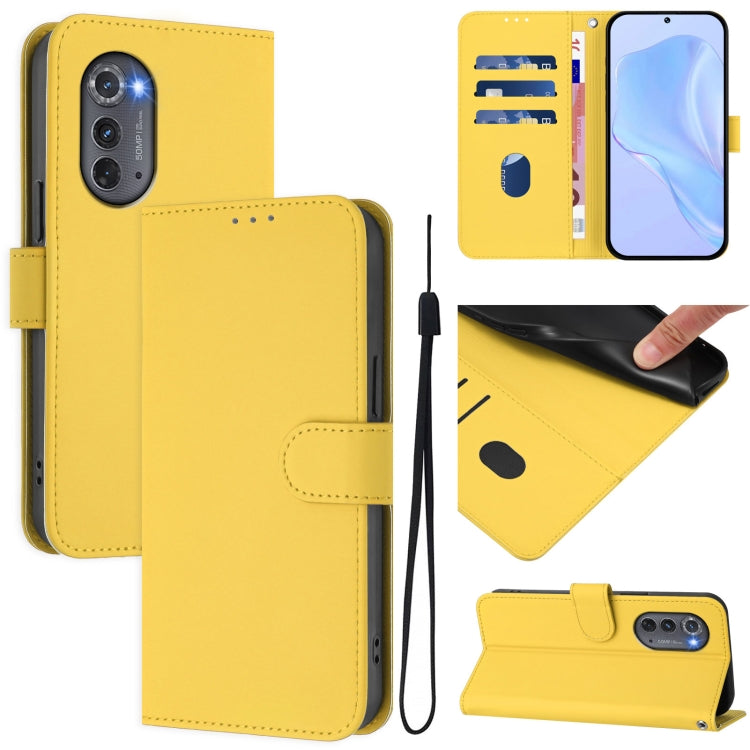 Funda de Piel Sintética con Cordón para Motorola Edge 2022 (Amarillo Limón)