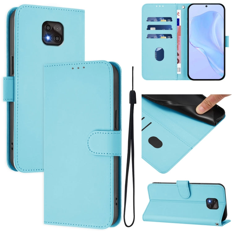 Funda de Piel Sintética con Cordón para Motorola Moto E20/E30/E40 (Azul Cielo)