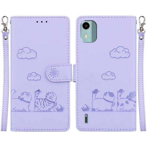 Funda de Cuero Rfid para Nokia Xr21 con Diseño de Gatos Lindos (Oro Rosa)