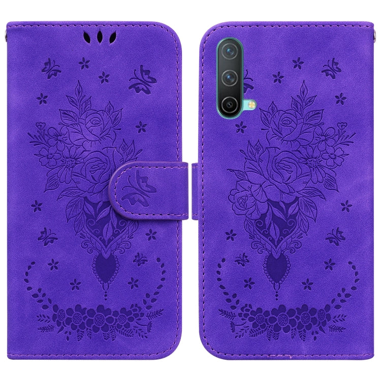 Funda para OnePlus Nord 2 5G Butterfly Rose en Relieve de Cuero (Púrpura)