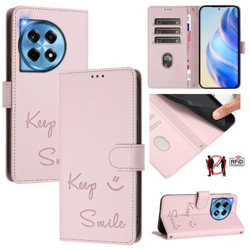 Funda de Cuero Rfid con Relieve Sonriente para OnePlus Nord 4 5G (Rosa)